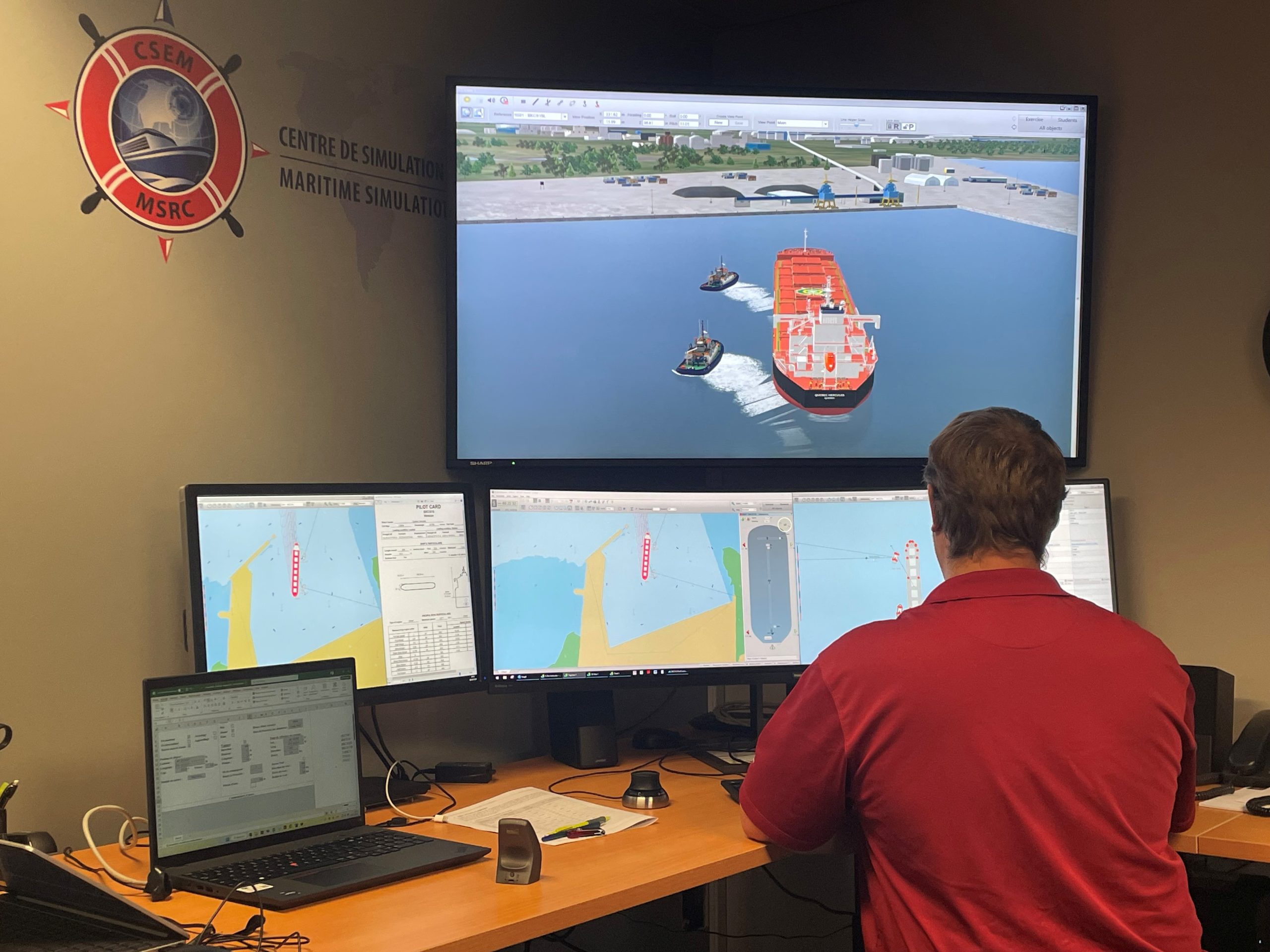 For this project, SPIPB’s management enlisted the Maritime Simulation and Resource Centre (MSRC) to conduct a series of simulations aimed at assessing the impacts on vessel maneuvering, in collaboration with pilots from the Corporation of Mid St. Lawrence Pilots (CPSLC).